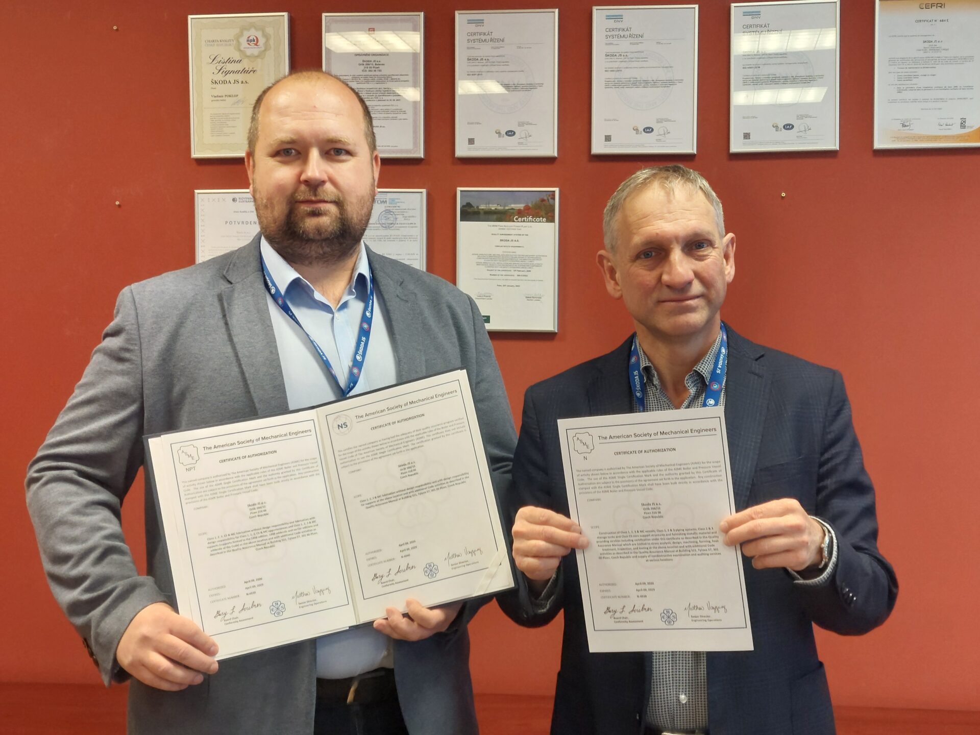 Získání certifikace patří k nejnáročnějším v oboru jaderného průmyslu. ŠKODA JS v těchto dnech již obdržela i potvrzující certifikáty a oficiálně figuruje na webu ASME v certifikacích pro jadernou energetiku. Její produkce určená pro primární části jaderných elektráren bude nyní označená razidly společnosti ASME, což jí kvalitativně odlišuje od řady dalších jaderných výrobců.