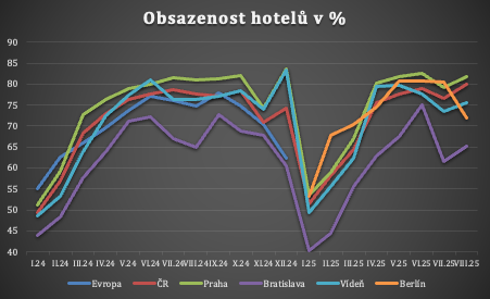 Srpnová globální data společnosti STR přinesla informace o vývoji hotelového trhu ve světě, v Evropě i České republice. Ukázala opakované stagnace a poklesy velkých a z hlediska našeho turismu klíčových zemí. V srpnu, posledním prázdninovém měsíci, takřka vymizí kongresy a korporátní turistika. Prázdniny bývaly vrcholem roku, ale poté převzal vládu květen a v poslední době jednoznačně prosinec.
