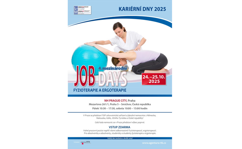 Praha 10. září 2025 (PROTEXT) – Ve dnech 24. a 25. října 2025 otevře renomovaná Agentura RTK International z Prahy brány Job Days / kariérních dnů pro ošetřovatelství, ergoterapii a fyzioterapii přímo v Praze v NH Prague City hotelu, Mozartova 261/1, Prha 5. Tato akce nemá v České republice obdoby a koná se 24. října od 10:30 do 17:30 a 25. října od 10:00 do 15:00. Je určena pro zdravotní sestry, ošetřovatele, pečovatele o seniory, osoby měnící povolání, ergoterapeuty, fyzioterapeuty, studenty a žáky škol, kteří se chtějí seznámit s novými kariérními možnostmi. Registrace není nutná, a to ani pro pohovory s klinikami.