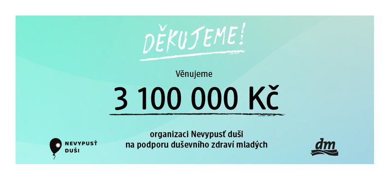 Pět procent z obratu učiněného 28. listopadu 2025 v prodejnách dm, v aplikaci Moje dm a v online shopu dm.cz se letos rovnalo částce 3 019 875,5 Kč. Tuto částku společnost dm zaokrouhlila na výsledné 3,1 milionu Kč, jimiž podpoří realizaci dvou klíčových projektů neziskové organizace Nevypusť duši. Organizace Nevypusť duši uskuteční během roku 2026 celkem 135 workshopů pro středoškolačky a středoškoláky s odhadovanou účastí přibližně 3 375 žáků a dále rozvine program Zázemí pro duši, do něhož se podle odhadů zapojí až 500 žáků a 60 vyučujících. Partnerství posiluje prevenci před duševním onemocněním a přináší ověřené informace přímo do škol tam, kde mohou mít největší dopad. Díky daru rozšíří organizace prevenci na školy po celé republice a posílí zázemí pro studenty a pedagogy.