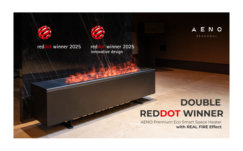 AENO Premium Eco Smart Space Heater s efektem skutečného ohně získal 2 ocenění Red Dot Design Awards v roce 2025