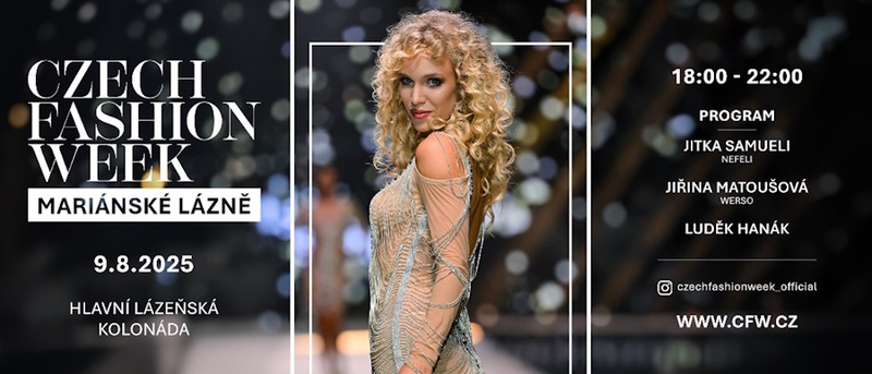 Srdečně vás zveme na společensko-kulturní akci Czech Fashion Week, která se koná dne 9.8.2025 od 18 hod na Kolonádě v Mariánských Lázních. Více informací a vstupenky na www.cfw.cz nebo na IG: @czechfashionweek_official