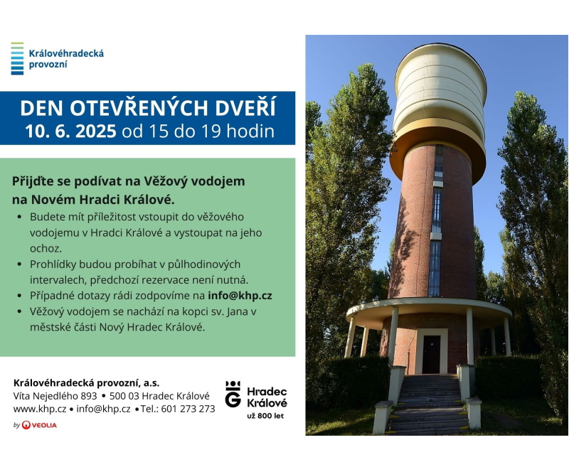 Praha 2. června 2025 (PROTEXT) – Přijďte se podívat v úterý 10. 6. 2025 od 15 do 19 hodin na Věžový vodojem na Novém Hradci Králové.