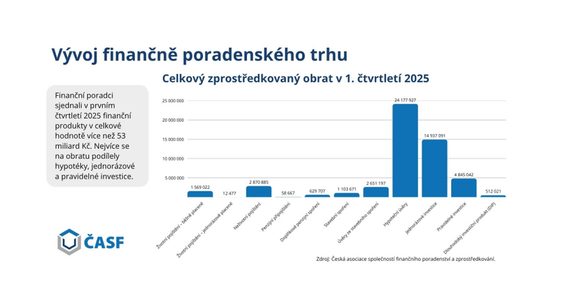 Finanční poradci sjednali v prvním čtvrtletí 2025 finanční produkty v celkové hodnotě více než 53 miliard Kč