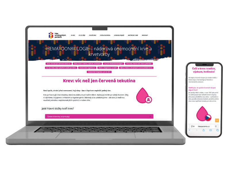 Stránka hlaspacientu.cz/hematoonkologie přináší ucelený a srozumitelný obsah garantovaný odborníky. Pacienti a jejich blízcí zde najdou základní vysvětlení pojmu hematoonkologie, přehled funkcí a složení krve, popisy příznaků a možností diagnostiky i léčby nejčastějších diagnóz. Web se věnuje také praktickým otázkám spojeným se životem s nemocí, poskytuje rozcestník na pacientské organizace a část mýty a fakta, která pomáhá vyvracet časté omyly.