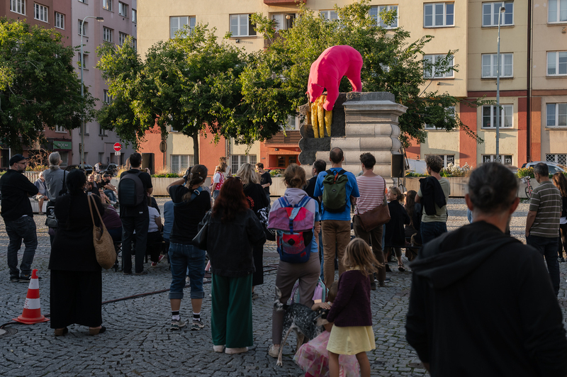 - Adam Kovalčík – sochař a autor předchozí instalace Karlínský vor