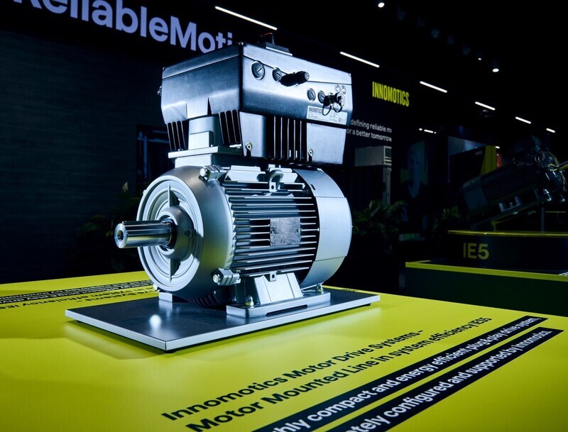Společnost Innomotics představí na svém stánku na Amperu Motor Mounted Line, kompaktní systém, který zahrnuje synchronní motor s frekvenčním měničem umístěným na kostře motoru místo standardní svorkovnice. Použité elektromotory jsou s účinností IE5 a celková účinnost systému je IES5, tedy nejvyšší definovaná dle IEC 61800-9-2. Toto spojení nabízí kompaktní řešení, není potřeba rozvaděč, je zapotřebí méně kabeláže a měnič je již přednastaven pro daný motor z výroby. V porovnání s klasickým asynchronním motorem má Motor Mounted Line při zachování výkonu až o 3 osové výšky menší rozměry, až o polovinu nižší hmotnost a uhlíkovou stopu o více než 25 % nižší, čímž dochází k úspoře energie a tím i snížení produkce CO2 již při výrobě, k dalším úsporám pak dochází díky vysoké účinnosti v celém rozsahu otáček a zatížení i při jeho provozu.