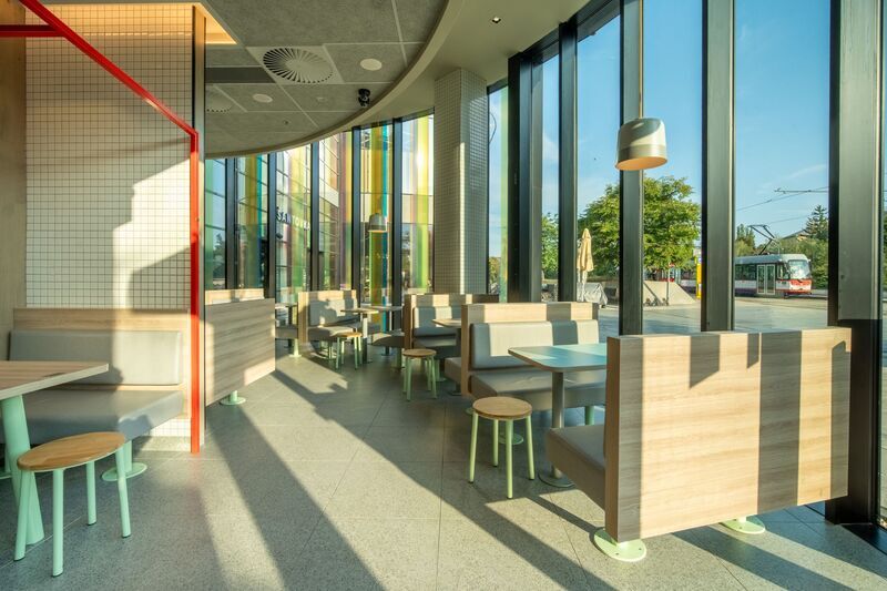 Nově je restaurace vybavena pěti samoobslužnými kiosky, které urychlí a zpříjemní objednávku. Hosté si navíc mohou vychutnat pestrou snídaňovou nabídku nebo kvalitní kávu z McCafé a posedět na čerstvém vzduchu na zahrádce před obchodním centrem.