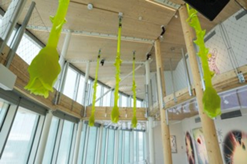 Klíčovou část nosné konstrukce ikonické spirály, která se v délce 349 metrů obtáčí kolem celé expozice, tvoří právě dřevěné elementy NOVATOP. Jejich výrobě předcházela několikaměsíční precizní příprava, která vyústila v dodávku 155 unikátních elementů o celkovém objemu 114,3 m³ dřeva. Každý element byl geometricky složitý a originální, což vyžadovalo stovky hodin pečlivé projekční a řemeslné práce. „Jednu z největších technických výzev představoval schodovitý element uložený na částečně vykonzolovaných sedmimetrových prvcích, jehož vzdálenost od nosného jádra konstrukce je skutečně impozantní,” doplňuje Jiří Oslizlo. Výsledkem vloženého úsilí je konstrukce, jejíž díly na stavbě zapadly s přesností stavebnice LEGO. Dřevo všech elementů zůstává po celém obvodu spirály pohledově přiznané a provází návštěvníky po celé jejich cestě expozicí.