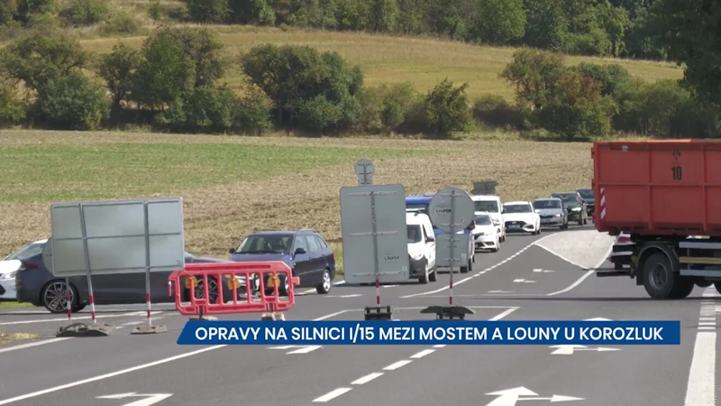 Opravy na silnici I/15 mezi Mostem a Louny u Korozluk