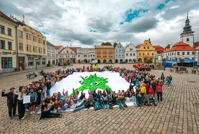 Osmimetrový maskot René se dostal do České knihy rekordů. Vytvořili ho pelhřimovští školáci