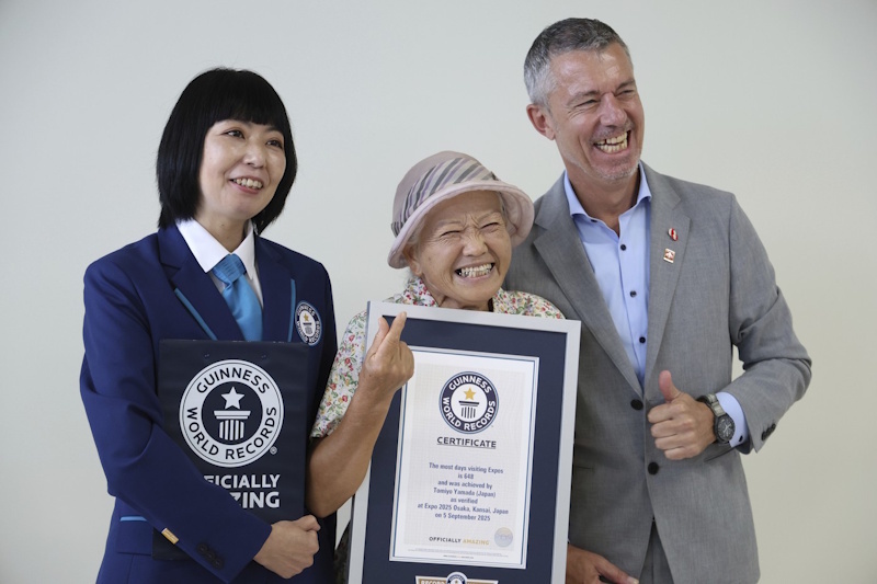 Japonská žena, která se zajímá o poznávání světa, překonala rekord Guinnessovy knihy v počtu dní strávených na výstavách. Nový zápis zní 1,7 roku. Jeho držitelkou je 76letá Tomijo Jamada, která navštěvuje světové výstavy 20 let. Celkový počet dní v areálu výstavišť činí neuvěřitelných 648 a stále roste, upozorňuje web www.guinnessworldrecords.com.