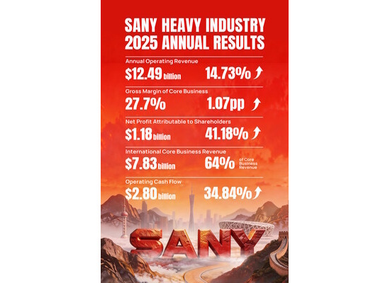 Peking 9. dubna 2026 (PROTEXT/PRNewswire) – Společnost SANY Heavy Industry (600031.SH, 06031.HK) zveřejnila své finanční výsledky za rok 2025. Tržby meziročně vzrostly o 14,73 % na 12,49 miliardy USD. Čistý zisk připadající akcionářům se zvýšil o 41,18 % na 1,18 miliardy USD. Čistý peněžní tok z provozní činnosti dosáhl 2,80 miliardy USD, což představuje meziroční nárůst o 34,84 %.