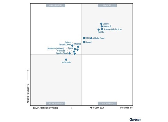 Zdroj: Gartner, Magický kvadrant pro správu kontejnerů 2025, 6. srpna 2025