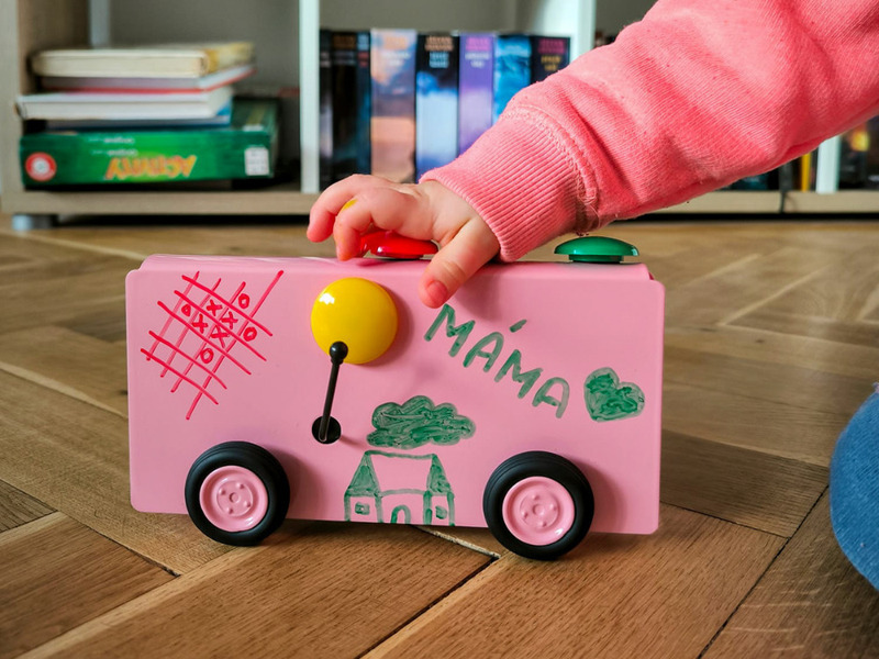 je plechová barevná jezdící tabulka s pérovým strojkem ovládaným pákou, na kterou je možné kreslit, přikládat magnety, připojovat vzkazy nebo ji užívat podle fantazie dětí. K nápisům lze používat stíratelné fixy. Jedna fixa Centropen je součástí balení. Rozměry: 90 mm x 45 mm x 180 mm (výška, šířka, délka – měřeno i s koly). K výběru je několik pastelových barev. Při jejím vzniku firma Kovap spolupracovala s českým designovým studiem Qubus.cz. Vyrobeno v ČR. Vhodné pro děti od 36 měsíců. Cena výrobku je 650 Kč
