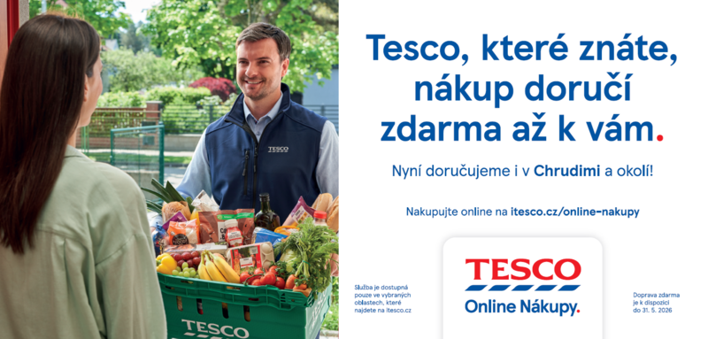 Chrudim 24. března 2026 (PROTEXT) – Společnost Tesco pokračuje v rozšiřování své oblíbené služby Tesco Online Nákupy. Od 24. března bude služba dostupná také zákazníkům v Chrudimi a okolí. V předvelikonočním období tak obyvatelé tohoto regionu získají možnost pohodlně nakupovat z domova, bez stresu a front, a to za stejné ceny jako v hypermarketech. Zákazníci mohou využít dopravu zdarma nad 1500 Kč a řadu dalších výhod. Služba je díky rozšíření dostupná pro 80 % domácností.