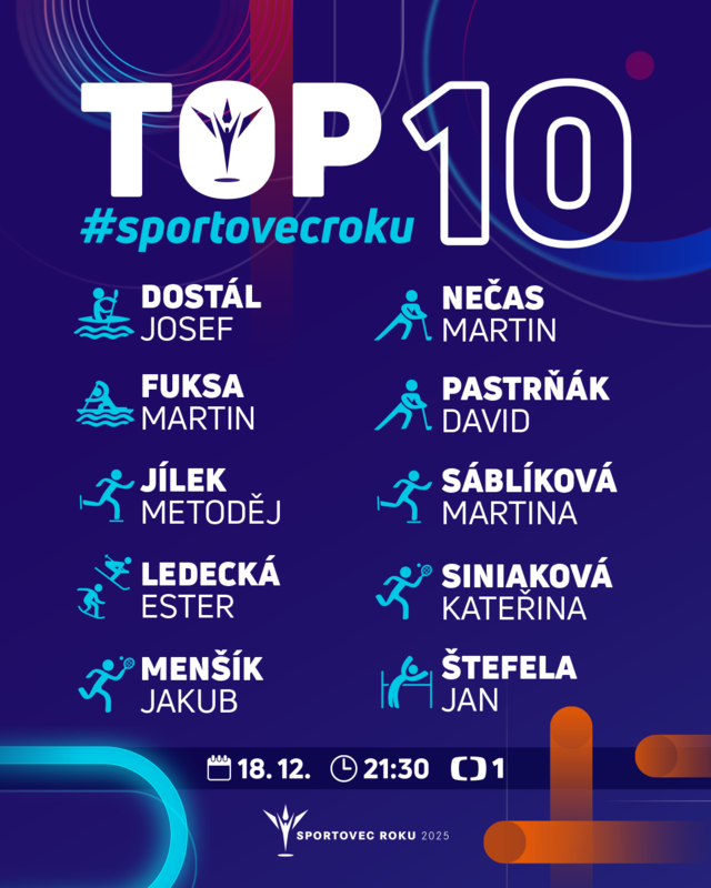 TOP 10 ankety Sportovec roku 2025 zveřejněna