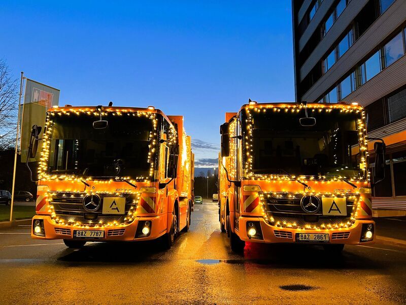 Vánočně ozdobená technika Pražských služeb letos znovu rozzáří metropoli. Dva popelářské vozy značky Mercedes-Benz 1830 GL na CNG pohon vypraví druhá největší městská společnost v neděli 30. listopadu. Až do nového roku je lidé potkají především v historickém centru. První pojede po levém břehu Vltavy, v oblastech kolem Pražského hradu, Hradčan, Starého Města nebo Malé Strany. Druhý pak po pravém břehu, na Starém Městě, okolo Betlémského náměstí, Uhelného či Ovocného trhu a také v lokalitě u Mariánského náměstí.