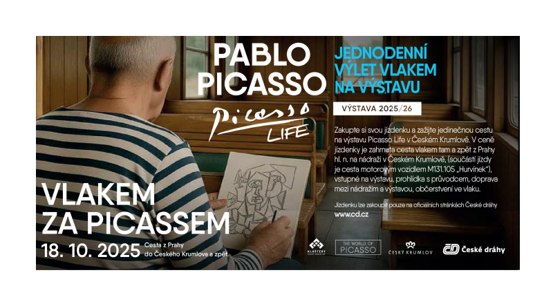 Praha 7. října 2025 (PROTEXT) – Ve spolupráci s The World of Picasso a České Dráhy je nabízen jednodenní výlet vlakem z Prahy do Českého Krumlova a zpět s návštěvou výstavy Picasso Life. Vše je pro cestující promyšlené do posledního detailu, aby si mohli užít den plný umění a zážitků bez zbytečných starostí.
