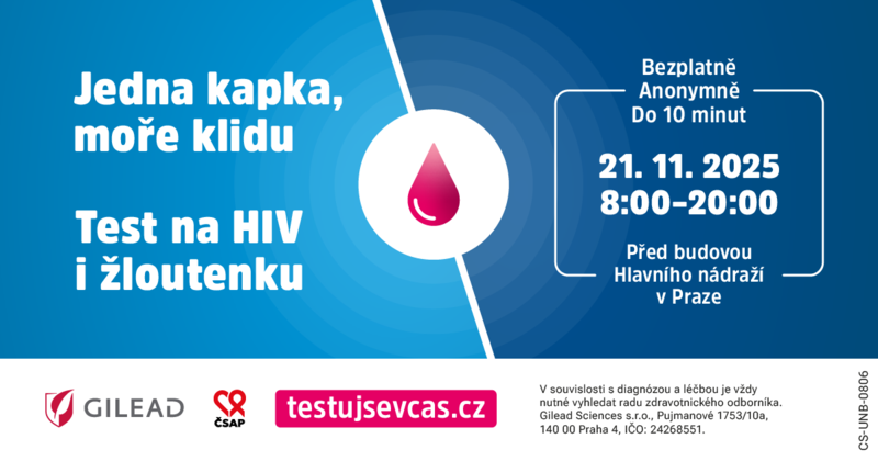 Praha 11. listopadu 2025 (PROTEXT) – Chcete mít jasno o svém zdraví? Pak neváhejte a připojte se k Evropskému týdnu testování na HIV, žloutenky typu B a C. Od 18. 11. 2025 do 24. 11. 2025 máte jedinečnou šanci nechat se otestovat a zjistit, jak na tom jste. V rámci testovacího týdne proběhne v pátek 21. 11. 2025 před budovou Hlavního nádraží v Praze testovací den společnosti Gilead Sciences s.r.o. a České společnosti AIDS pomoc. Anonymní a bezplatné testování na HIV, žloutenky typu B a C a syfilis bude probíhat od 8:00 do 20:00.