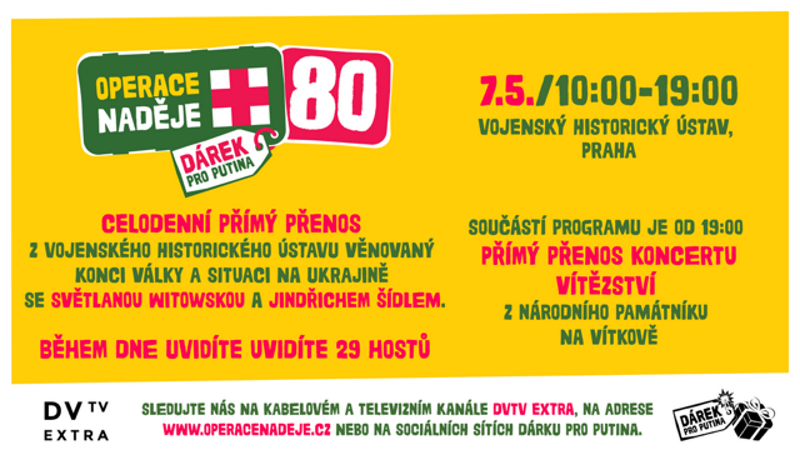 Nadační fond pro Ukrajinu ve spolupráci s Vojenským historickým ústavem pořádají celodenní živé vysílání projektu Operace Naděje 80. Vysílání z Vojenského historického ústavu věnované konci války a situaci na Ukrajině se Světlanou Witowskou a Jindřichem Šídlem sledujte od 10:00.