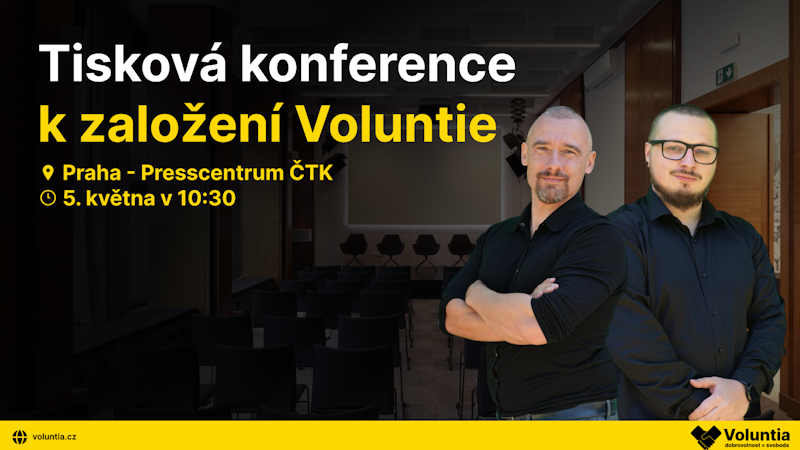 Zakladatelé Tomáš Rouda a Jiří Fábera představí v pondělí 5. května novou pravicovou stranu Voluntia.