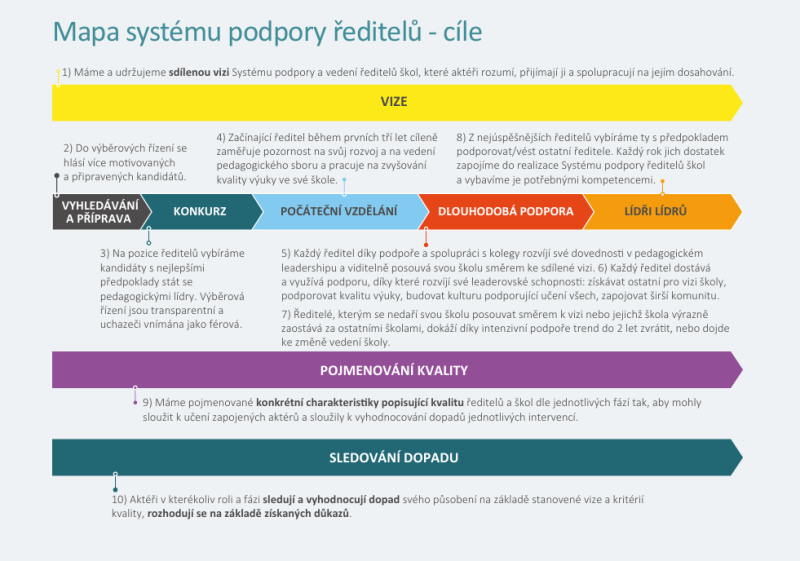 Z celkové Vize systému podpory a vedení ředitelů škol byly pro první fázi vybrány čtyři hlavní priority: