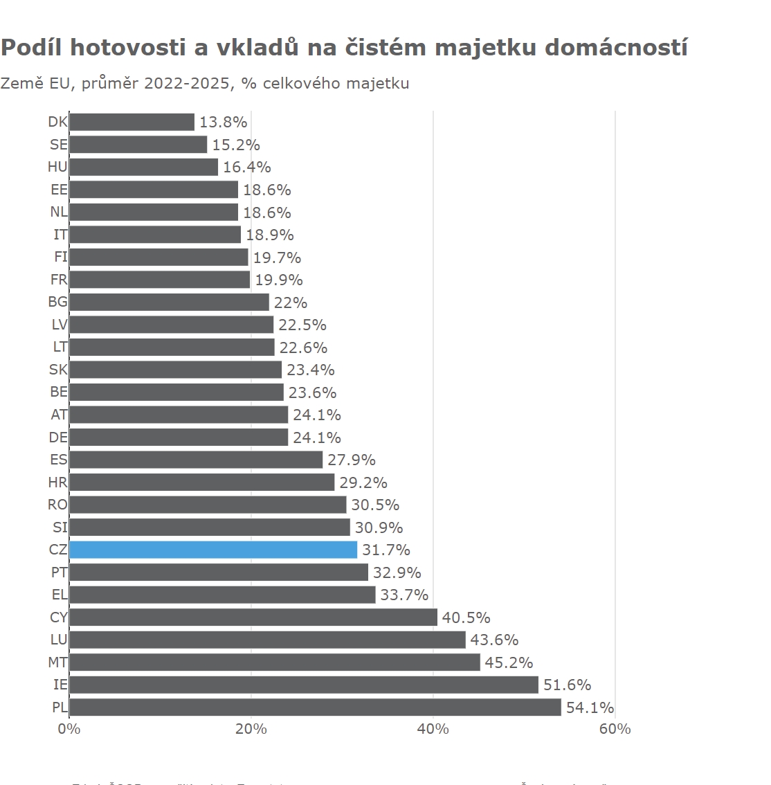 Když pomineme Maďarsko nebo Bulharsko s výrazným podílem investic domácností v nemovitostech, mají nejnižší podíl neproduktivních vkladů na čistém jmění domácnosti v Dánsku a Švédsku, kde domácí kapitálový trh patří k nejrozvinutějším – podíl investic do akcií a fondů na čistém jmění domácností se tam pohybuje okolo 50 procent. Česko by mělo mít ambici posouvat se právě tímto směrem, i když je jasné, že to bude v každém případě běh na dlouhou trať.